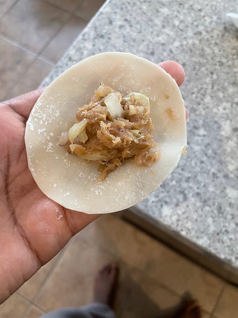 The week before making them from scratch, I had bought a pre-packaged veggie dumpling from the asian market. I personally don’t usually buy them, but I’ve been exploring a lot more in asian cuisine. The week after, I was craving them again, and Mussé suggested I should try making them on my own. Honestly, leave it to him to get me to make something from scratch because he knows how I’ll feel after doing it, but most importantly, during the process.